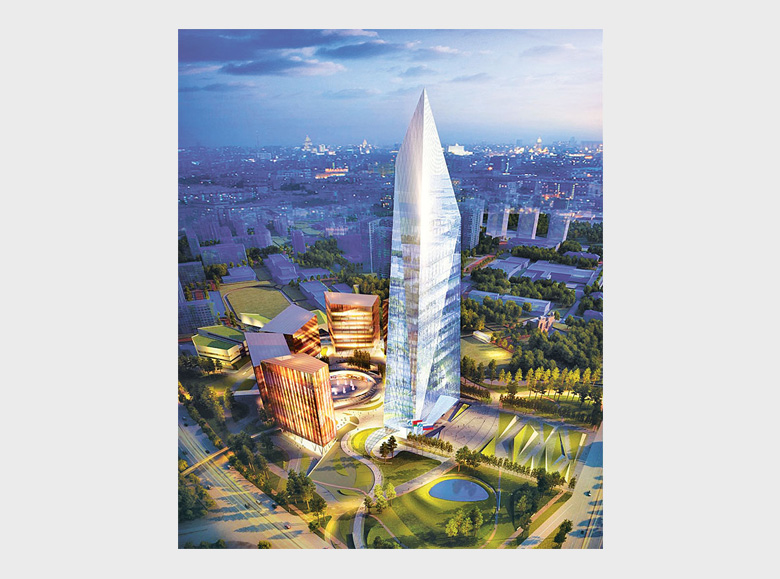 Комплекс «Газпрома» строят на месте бывшего Московского автовокзала. Кроме центрального стеклянного здания высотой 182 метра, которое должно напоминать жителям Минска газовый факел и в котором разместится офис «Газпрома», здесь построят еще пять офисных зданий пониже (12-15 этажей), четырехзвездочную гостиницу Radisson Blu с конгресс-центром на 1 000 мест, спортивный комплекс со SPA и бассейном, детский учебно-развивающий и медицинский центры. Рядом появятся торговые улицы, пешеходная площадь с открытым амфитеатром на 1 000 зрителей для проведения мероприятий, зона отдыха с фонтаном, а на самом верху башни – многоуровневый ресторан с обзорной площадкой. Так что у Национальной библиотеки будет серьезный конкурент. Между библиотекой и комплексом над улицей Филимонова сделают мост для пешеходов и велосипедистов.