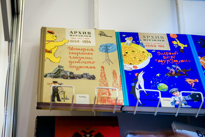 Из заявленных российских участников некоторые не приехали – например, не было детского издательства «Самокат». «Livebook», кажется, тоже не доехали, а жаль, обычно они привозят с собой остатки тиражей своих книг, которых уже нигде не достать. Из заметных российских стендов – «Рипол классик» с красивыми детскими книгами про Дарвина, Андерсона и Эйнштейна и полной серией для ленивых, но любознательных «За 30 секунд»; «Вита Нова» с серьезными (в кожаных обложках и большого формата) и очень хорошо иллюстрированными коллекционными изданиями «Короля Артура», «Алисы в Стране чудес», сказок Андерсона, Перро, Гофмана, Салтыкова-Щедрина. Есть книги и попроще, без кожаных переплетов, но все равно красивые, например, «Ежик в тумане» с теми самими иллюстрациями из мультика Юрия Норштейна и Франчески Ярбусовой, «Сонные трамваи» Мандельштама или сказки Ремизова. Для тех, у кого нет денег на книги, продаются открытки и магниты с рисунками Норштейна и Ярбусовой.