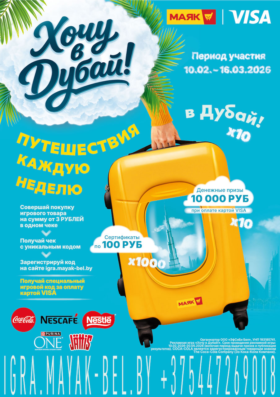 Игра получила говорящее название «Хочу в Дубай!». С 10 февраля по 16 марта 2026 года при покупке игровых товаров на сумму от трех рублей выдается уникальный код в чеке. Его останется лишь зарегистрировать в личном кабинете на сайте игры, заполнить личные данные и подтвердить свое участие в игре.