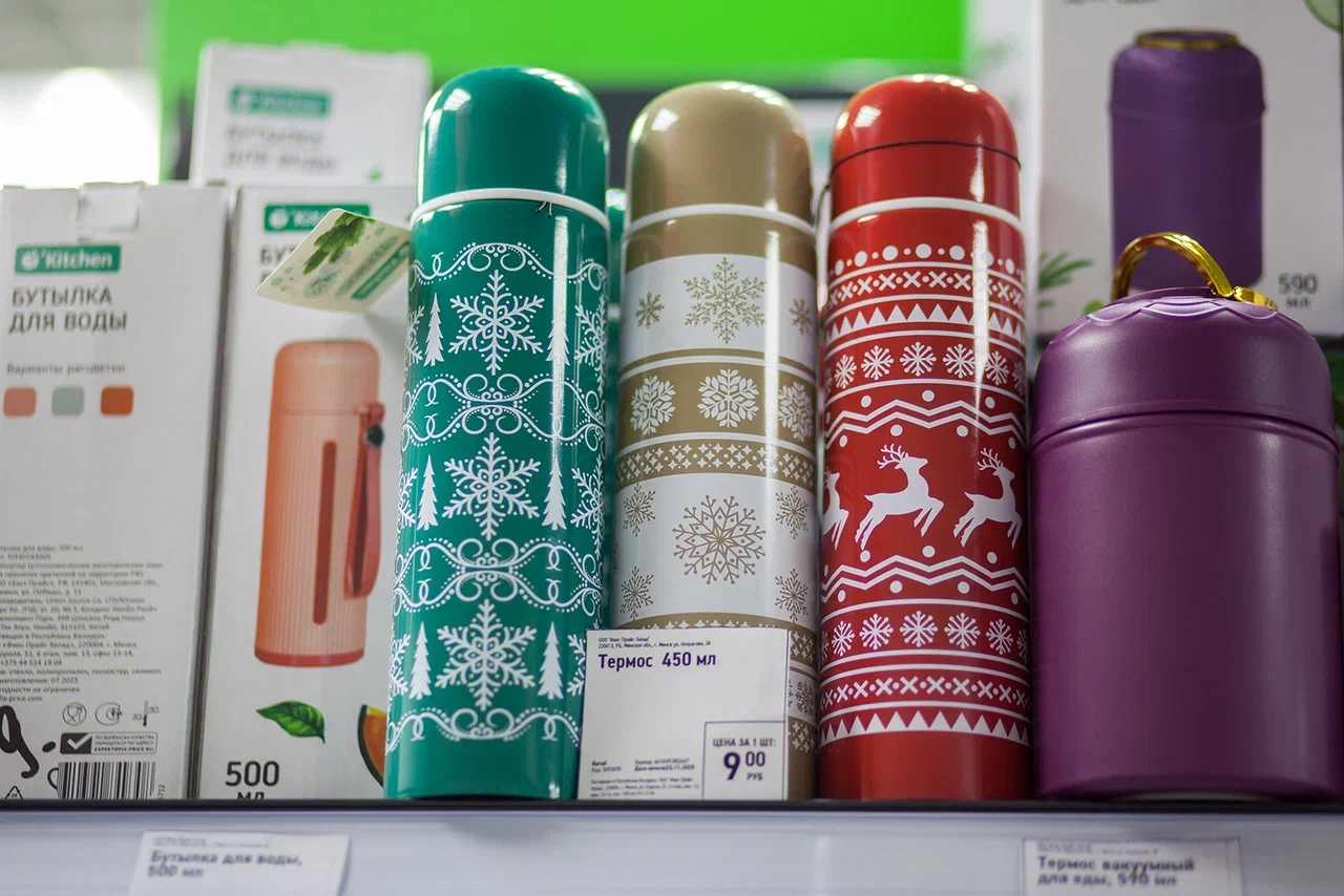 Термос в новогоднем дизайне поможет сохранить тепло напитка как минимум на 12 часов. Прекрасный выбор для долгих зимних прогулок.