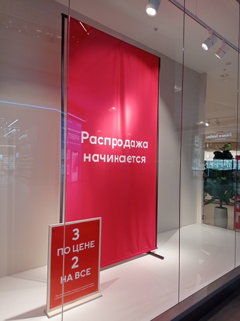Сейчас там устроили распродажу: три вещи продают по цене двух. В акции участвуют абсолютно все вещи в магазине. Платить не нужно за ту третью вещь, которая дешевле всех из выбранных вами трех.