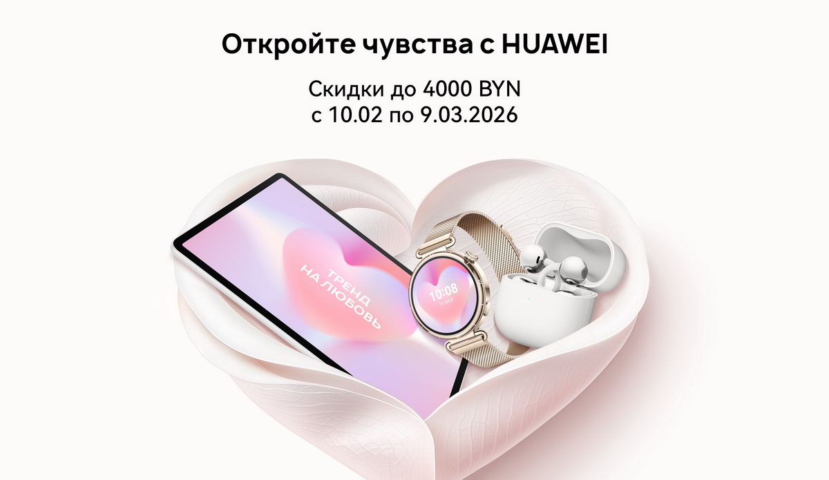 Скидки до 4000 рублей на устройства Huawei действуют по 9 марта 2026 года по всей Беларуси. Как раз можно воспользоваться к ближайшим праздникам, чтобы порадовать родных и близких. Акционные цены установлены в сетях МТС, А1, «5 элемент», 21vek, «На связи» и «Электросила».