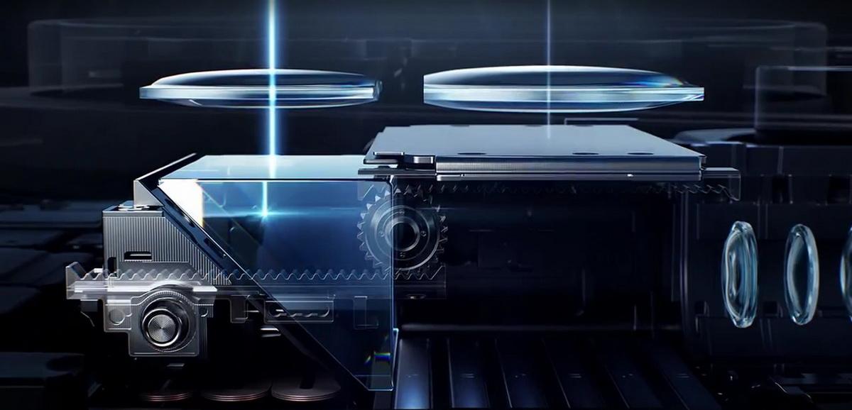 В конечном итоге была воплощена идея, которую вкратце можно описать так: «давайте оставим только один сенсор, а фокусное расстояние будет меняться». На практике ее воплотили с помощью двух объективов, подвижной платформы и двух призм.