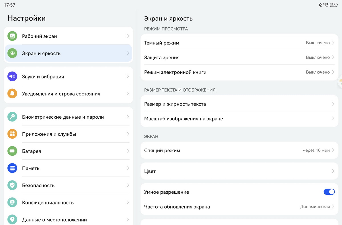 Выбор соответствующей частоты обновления доступен в разделе «Экран и яркость» настроек планшета.