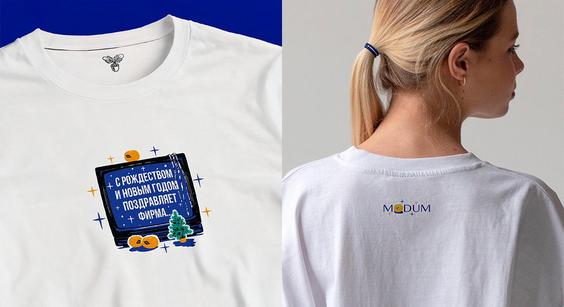 Белорусская фирма «Модум» сделала коллаборацию с брендом одежды LSTR. Они создали футболки с цитатой из той самой легендарной рекламой: «С Рождеством и Новым годом поздравляет фирма...» А сзади, на спине, написано «Модум».