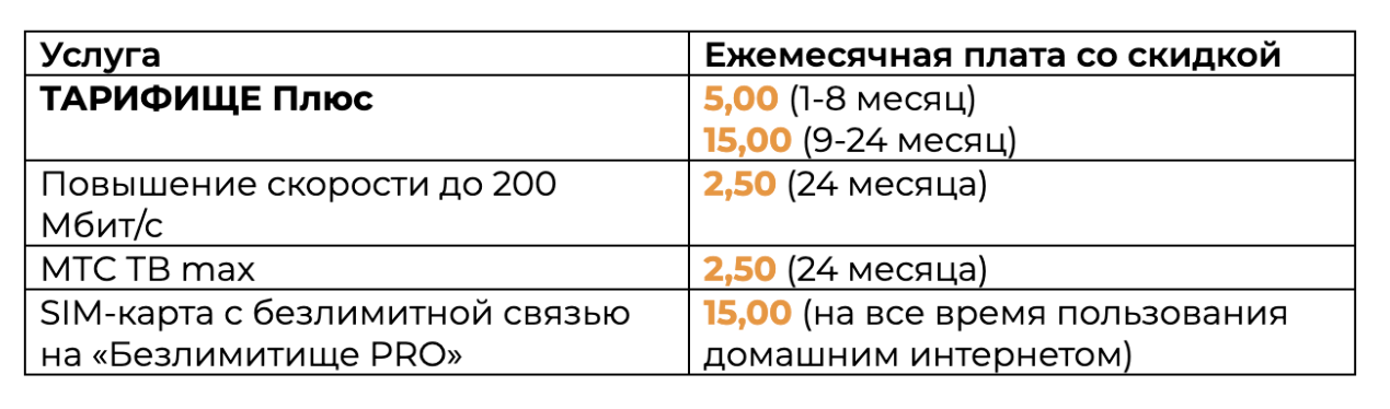 Абоненты смогут собрать индивидуальный пакет: увеличить скорость, добавить более 120 каналов в МТС ТВ и получить до 3-х номеров с безлимитным интернетом, звонками во все сети Беларуси и возможностью подключить скидку 100% на раздачу трафика в режиме модема.