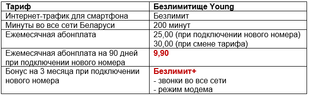 За эти деньги пользователи получат безлимит интернета на максимальной скорости с раздачей трафика в режиме модема, а также звонков во все сети Беларуси. Подключить тариф на спецусловиях могут белорусы от 14 до 23 лет включительно, выбравшие новый номер в МТС.