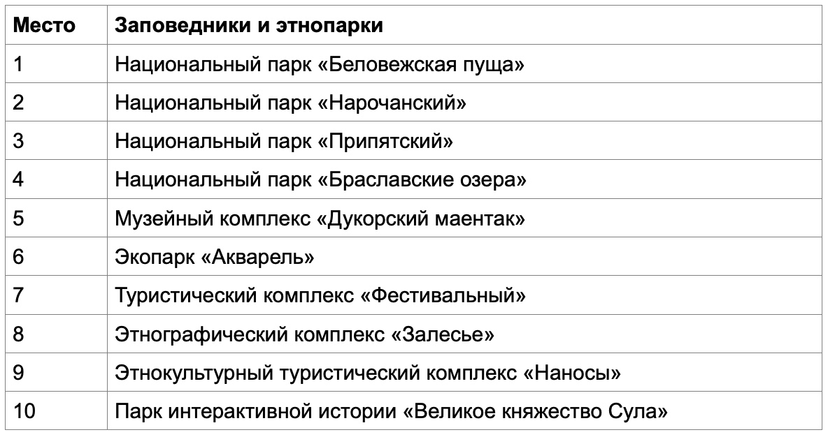 Не менее популярным оказался и отдых на природе. В тройке лидеров — главные национальные парки страны. «Беловежскую пущу» для зимних путешествий выбрали 58 тысяч пользователей, а в «Нарочанском» и «Припятском» парках побывали соответственно 37 и 30 тысяч абонентов МТС.
