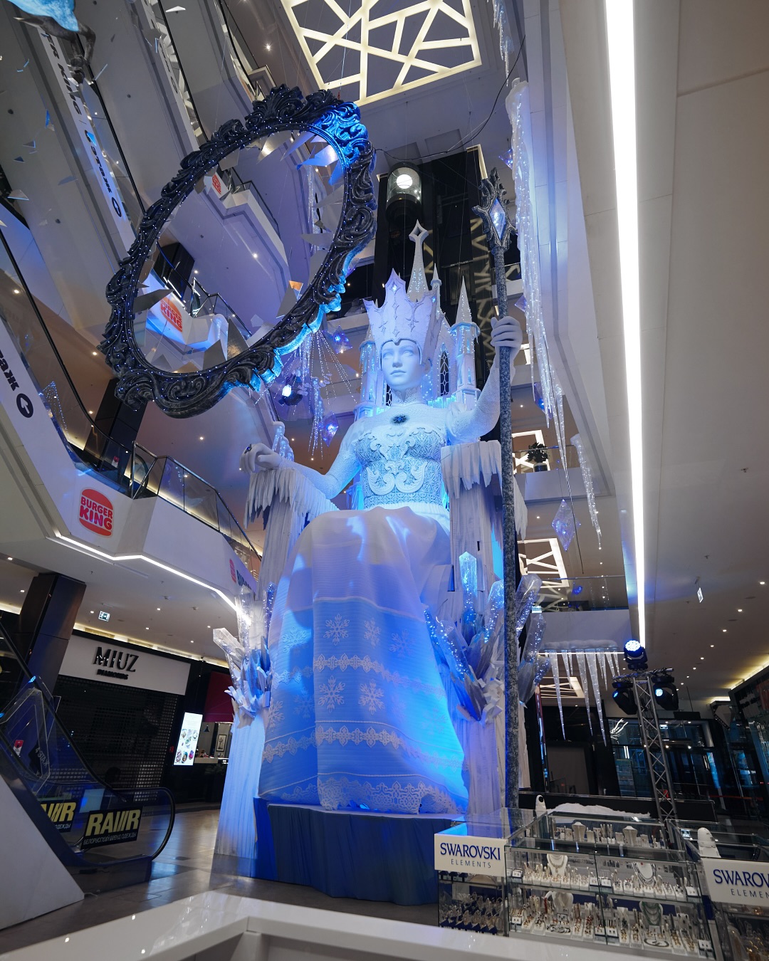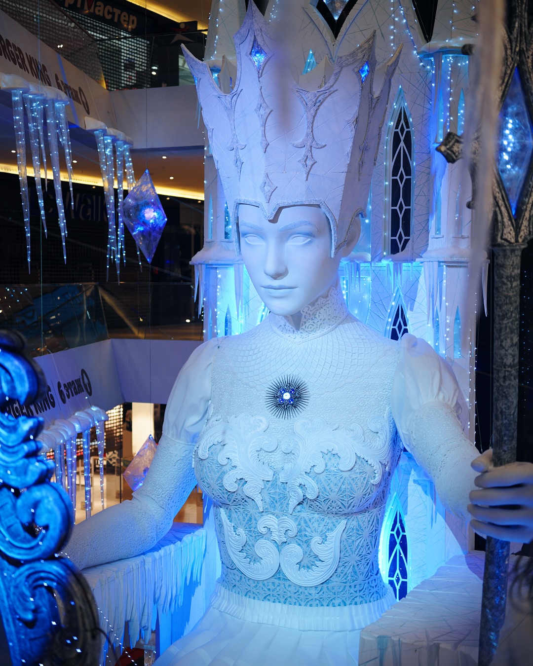 Тем более, сейчас некоторые торговые центры великолепно украшают к Новому году. Огромная Снежная королева в ТЦ Галерея – возможно, главный перфоманс года. Ещё интересные большие инсталляции поставили в ТРЦ «Галилео» и ТРЦ Дана Молл.