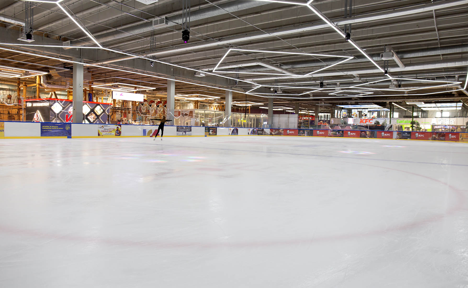 Из несомненных плюсов: прямо возле катка – фудкорт, так что можно сразу подкрепиться.
