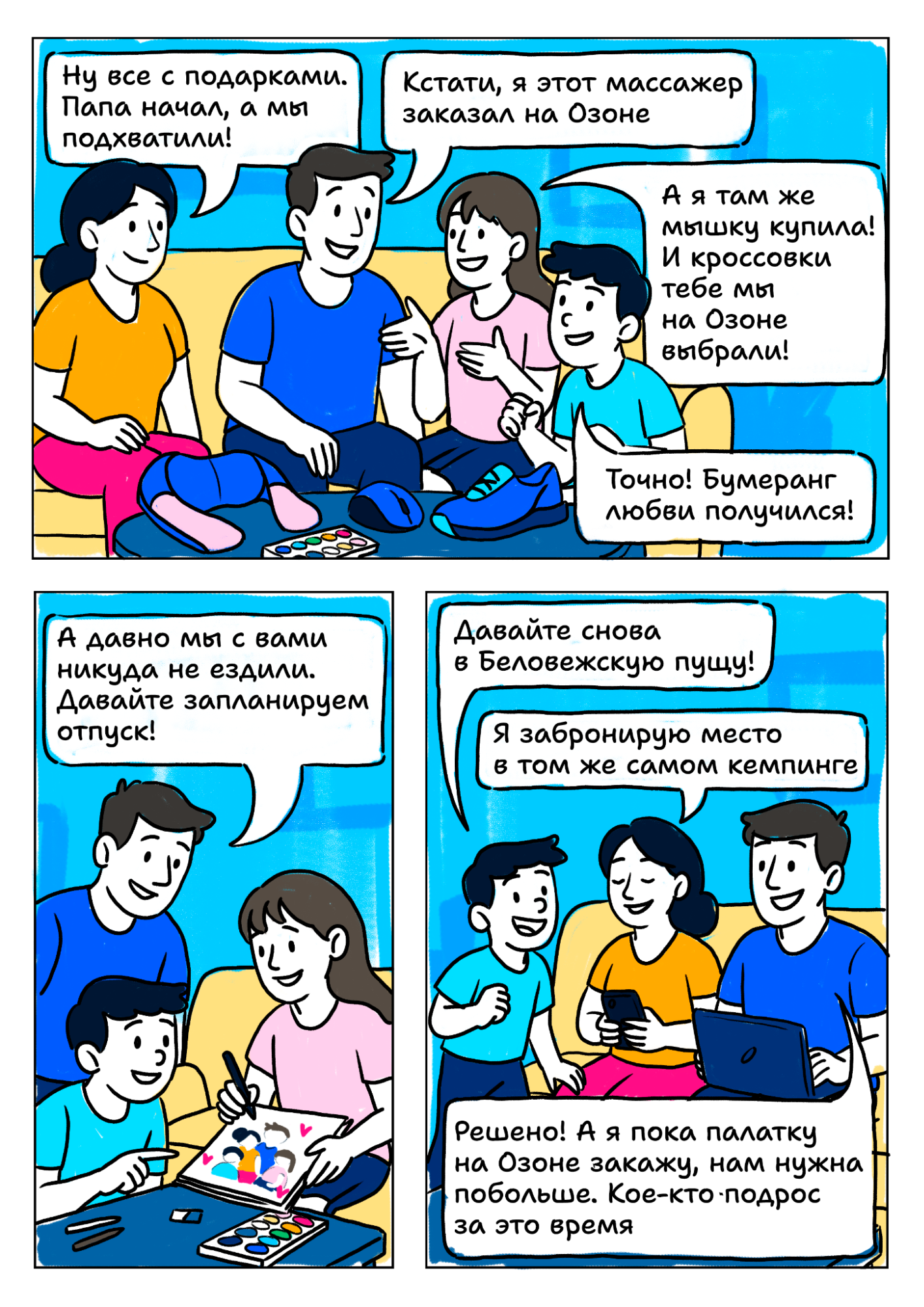 Любовь — это язык, на котором говорит ваша семья? Тогда говорите на нем с помощью Ozon.by . Зарегистрируйтесь и начните покупать с заботой, ведь именно из таких мелочей складывается счастье. Ваша очередь запустить бумеранг любви!