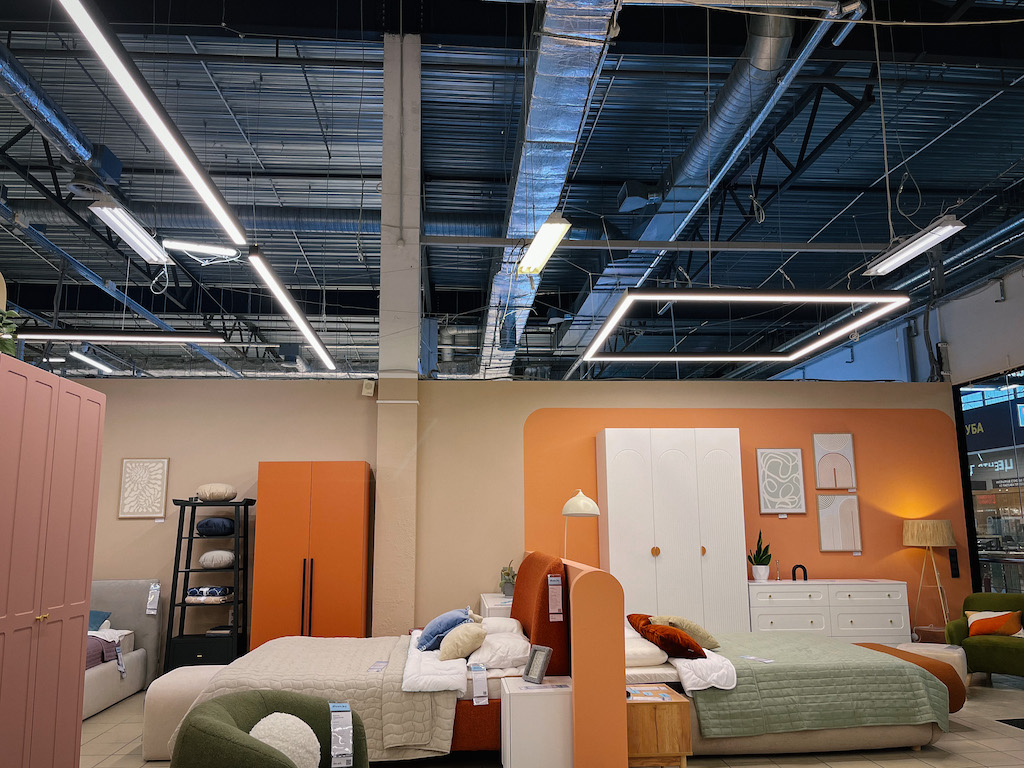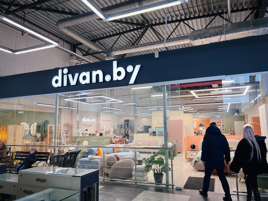 Сели на автобус 912Э, доехали до Международного выставочного центра, потом шли вдоль МКАДа, издалека видели БелАЗ и указатель на Северный берег, прошли через заправку с фурами – и вот мы в торговом центре All House. Такой путь был проделан только ради того, чтобы повторить фантазию из ромкома, где Том и Саммер сидят на диване, едят на кухне и валяются на кровати в Икеа. У нас вместо Икеа – шоурум divan.by.