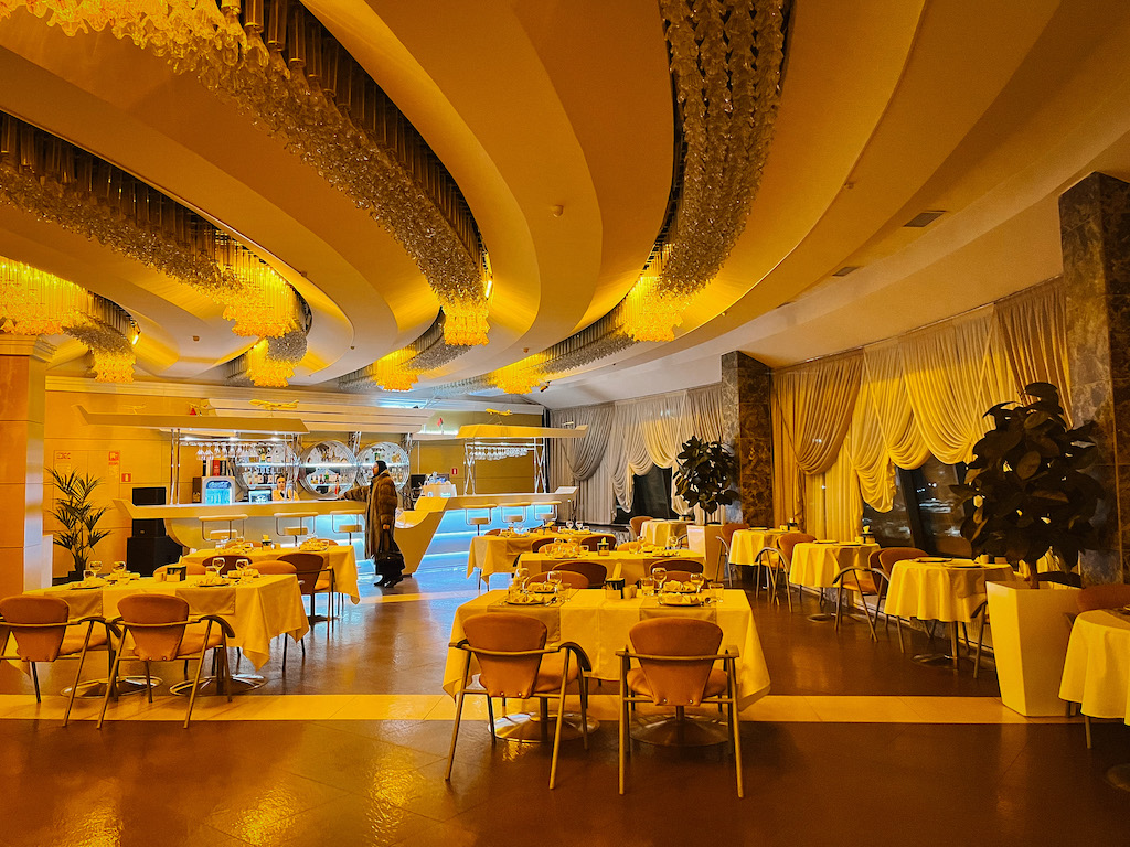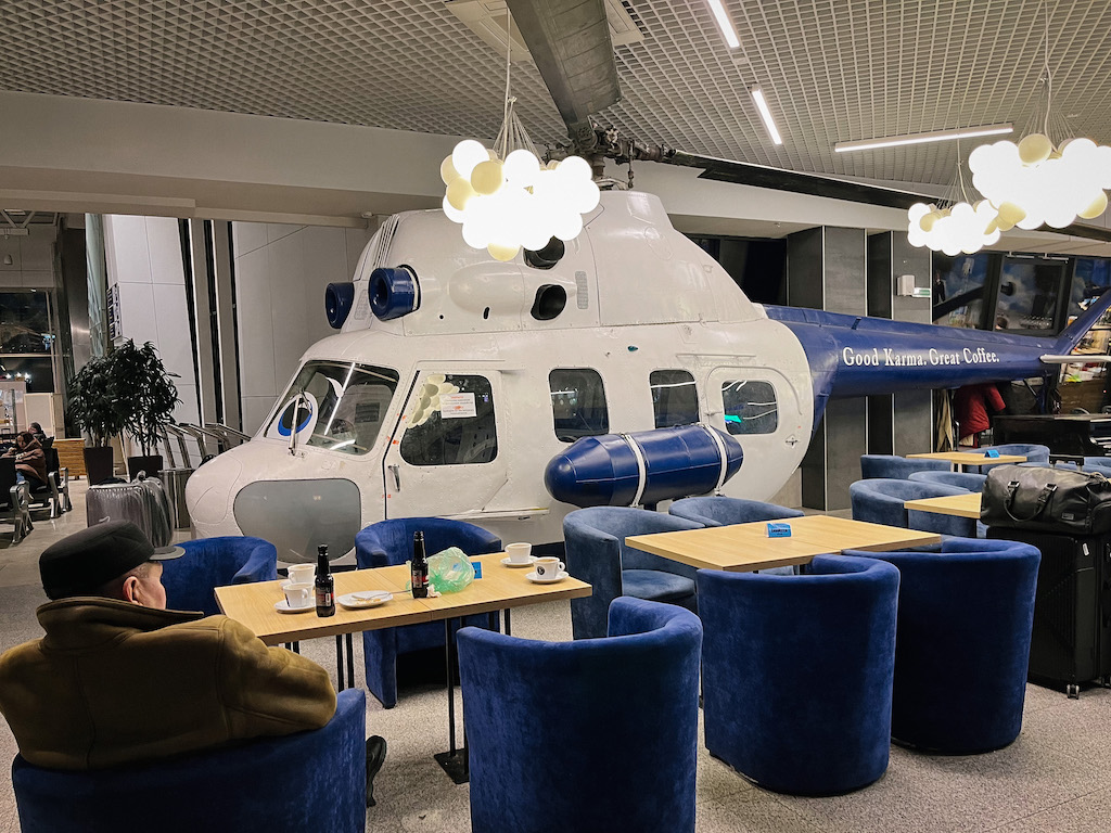 Парень почти сразу направился в сторону самого роскошного ресторана «Лайнер». Ресторан был пустой, только за баром стояла одна-единственная скучающая официантка. Мы сели за стол c белой скатертью, полистали меню, почитали авиационные названия блюд, посмотрели цены и ушли.