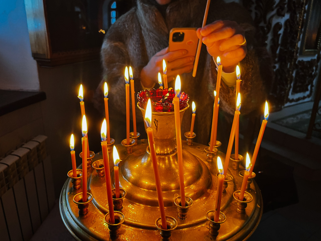 Свидание прошло на вайбе традиционных ценностей. Мы купили на улице свечки по рублю и зашли в церквушку. Внутри она маленькая и круглая. Погуглили, какой иконе и как помолиться. Поставили свечку за то, чтобы мы не расстались и я дописала этот текст до конца. Внутри очень спокойно. Мы еще какое-то время посидели на стульчиках вдоль стены рядом с батареей. Потом еще раз зашли в кофейню и еще раз в церковь. Там уже была служба и пел хор.