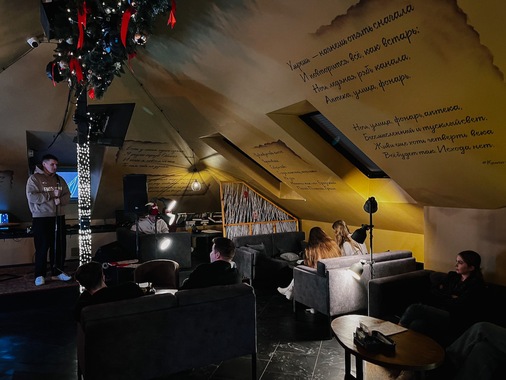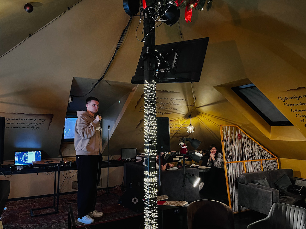Открытый микрофон в кальянной, где выступает около 10 комиков за вечер. Почему-то среди пар очень популярно именно такое времяпрепровождение. Я знаю это, потому что 7 лет хожу на опенмайки и постоянно слышу, как ведущий издевается над теми, кто в отношениях.
