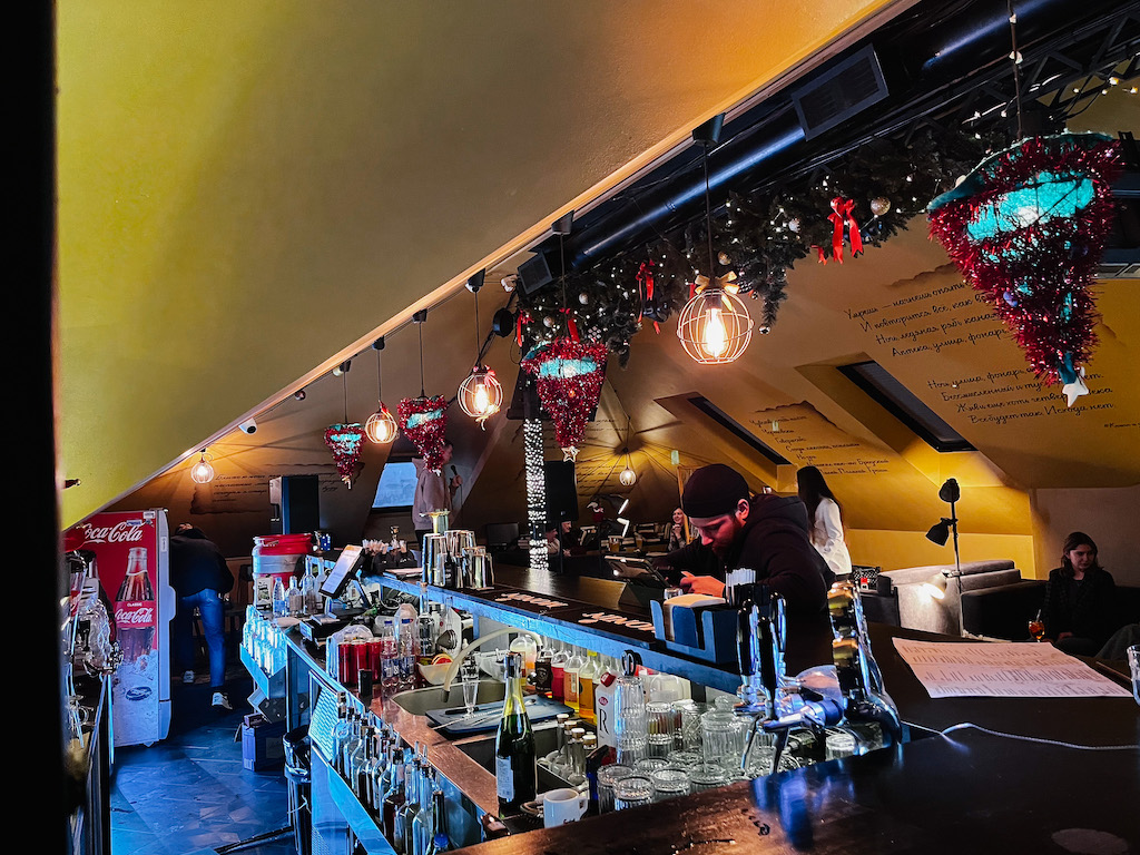 Нам понравилось, что в баре играл олдскул рэп, везде были раскиданы книги, как будто кто-то их тут читает, а на стене Гоголю пририсовали кальян. Может не повезти с мероприятием, но если вы не дураки, то хорошо время провести сможете. И начнете ценить свои отношения, когда узнаете, как плохо все у других.