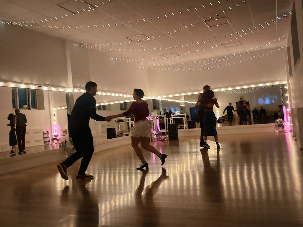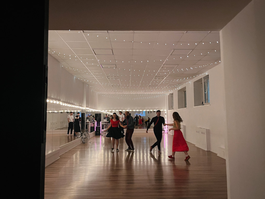 Где-то через 20 минут мы узнали, что нас не научат танцевать сегодня, и нам все-таки надо приходить на пробное занятие. Танцевали сами, как могли и умели. Парень cо своим бибойским прошлым спокойно импровизировал, а я почти все время подсматривала за остальными парочками. Они еще и менялись партнерами между собой, что для моногамной меня было особенно странным. Больше всего мне понравилась одна пара: девушка в белой юбочке и туфельках «мери джейн» и ее высокий партнер в белом поло. От них был вайб короля и королевы бала школы. А Саша смотрел, как они танцуют и прокомментировал: «Это Ла-Ла Ленд».